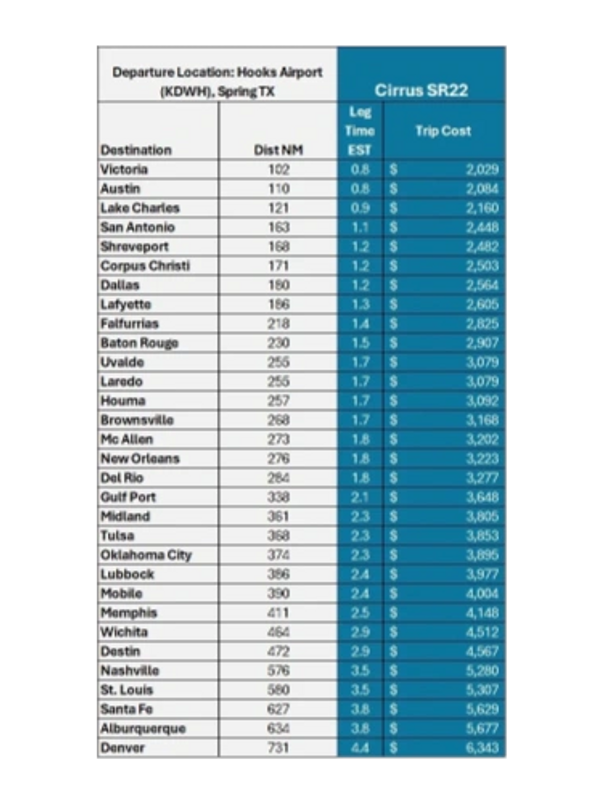 Avoid the commercial flight hassle and get from Houston to Dallas in just over an hour. Ideal for executives needing round-trip travel in a single day.